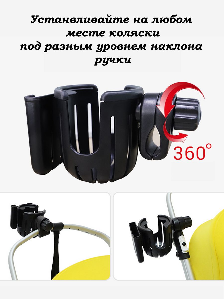 Идеальное решение для родителей и молодых мам – универсальный двойной подстаканник для коляски 2в1 для бутылочек с водой, кружки для ароматного кофе или термокружки, термоса и держателем телефона! Этот универсальный компактный аксессуар подходит для любых моделей колясок, детских колясок для зимы и лета.